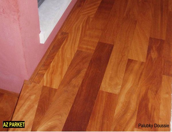 Palubky Doussie 350-1.200 x 115 x 15 mm tř. A. Povrchová úprava Henkel Thomsit PP70. Subdodávka pro firmu GadLine.