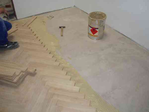 Pokládka cca 90 m² dubových parket tř. I vzor rybina v prostorách rekonstruovaného úřadu. Subdodávka pro firmu Metrostav a.s.